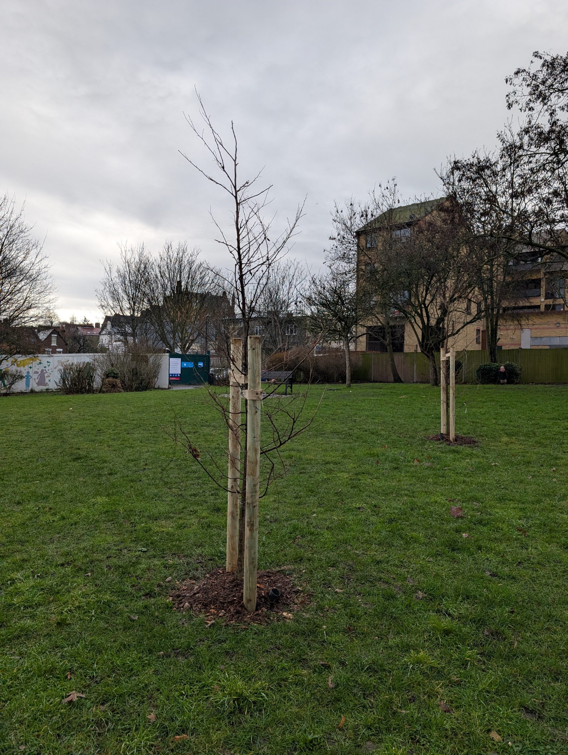The tree species planted were: Black Walnut, Japanese Pagoda, Sorbus thuringiaca, Magnolia, Judas tree, English Oak, Indian bean tree, American sweetgum and Maidenhair tree. A simple map on google can be found here showing species and location in the parks.