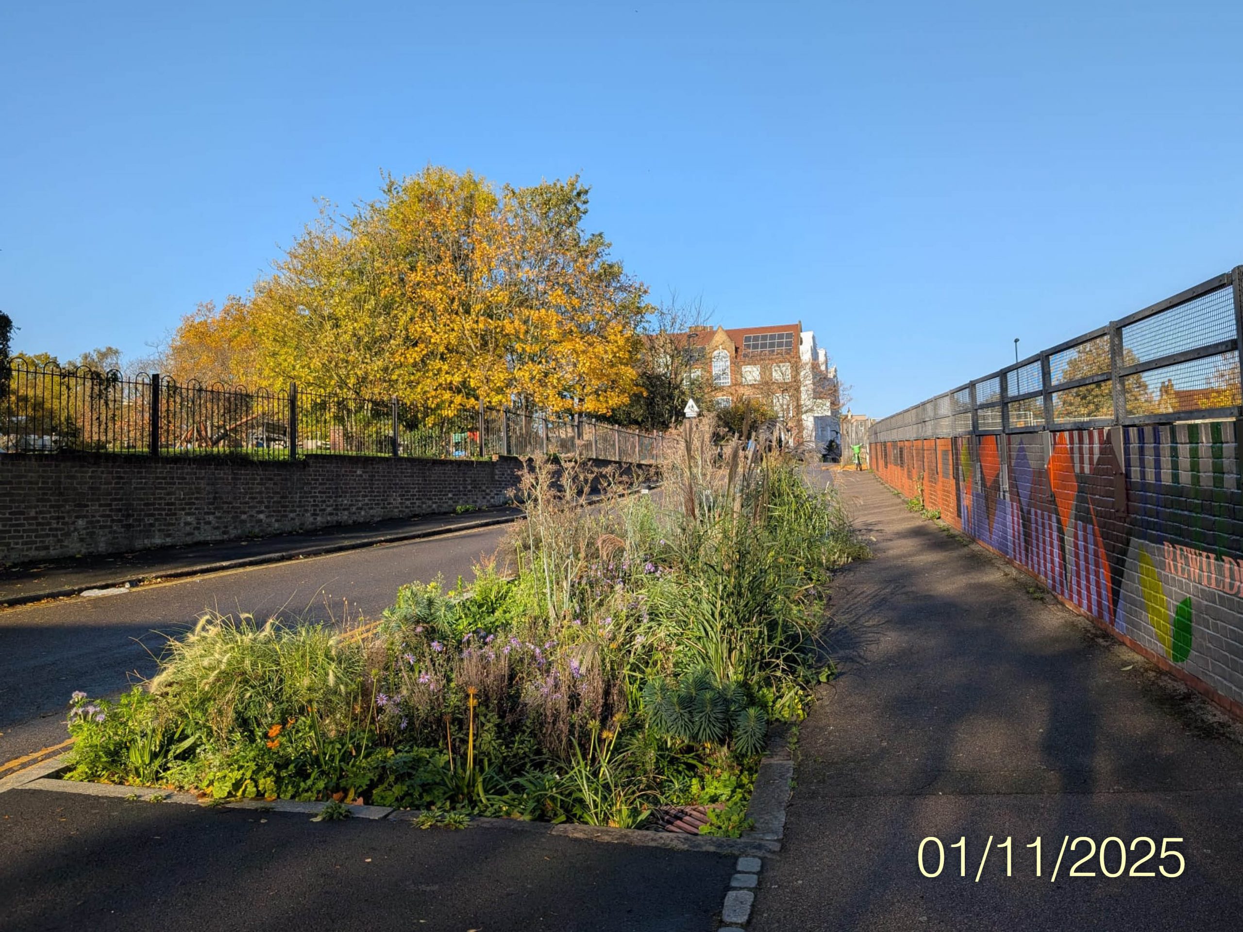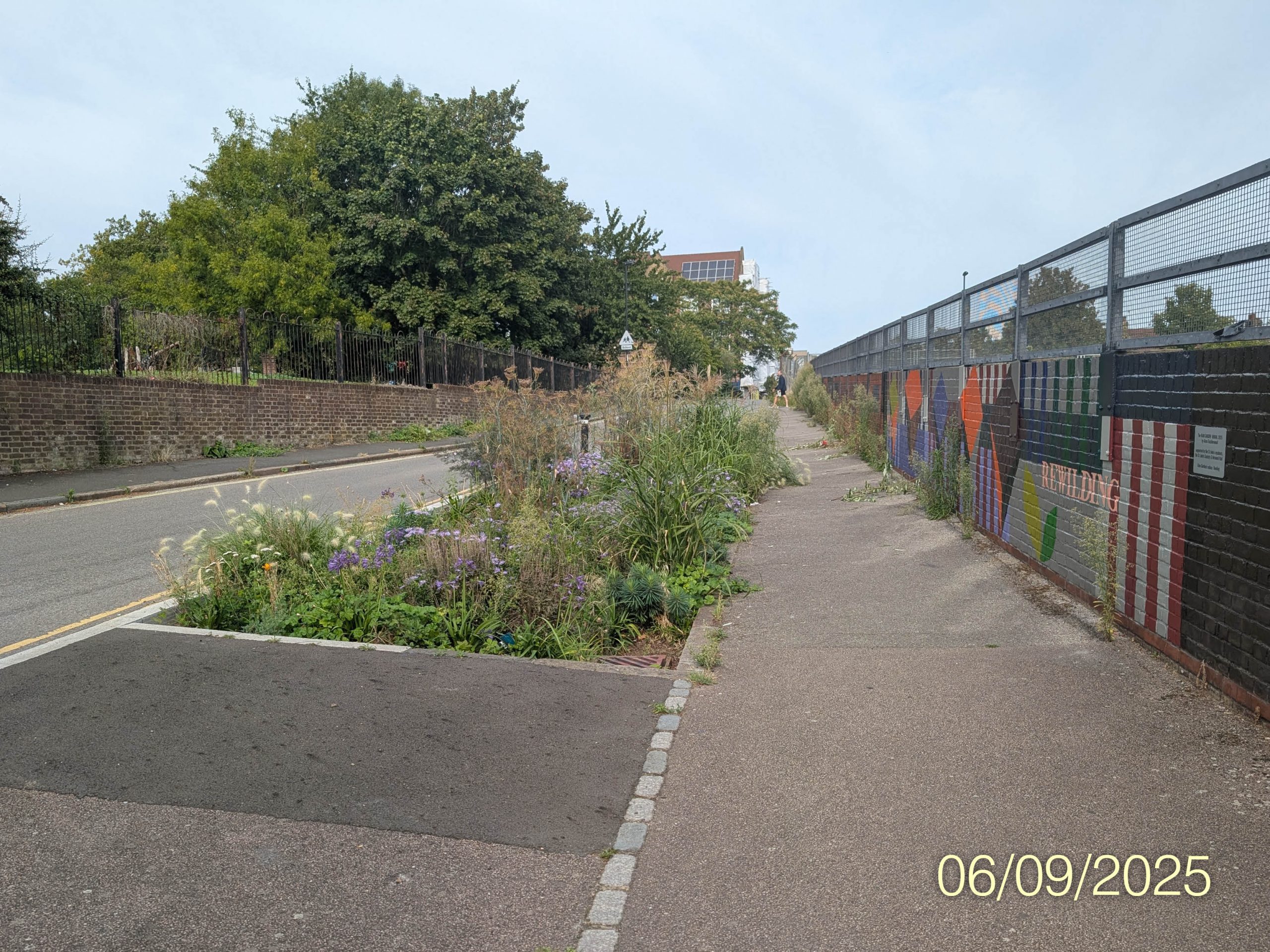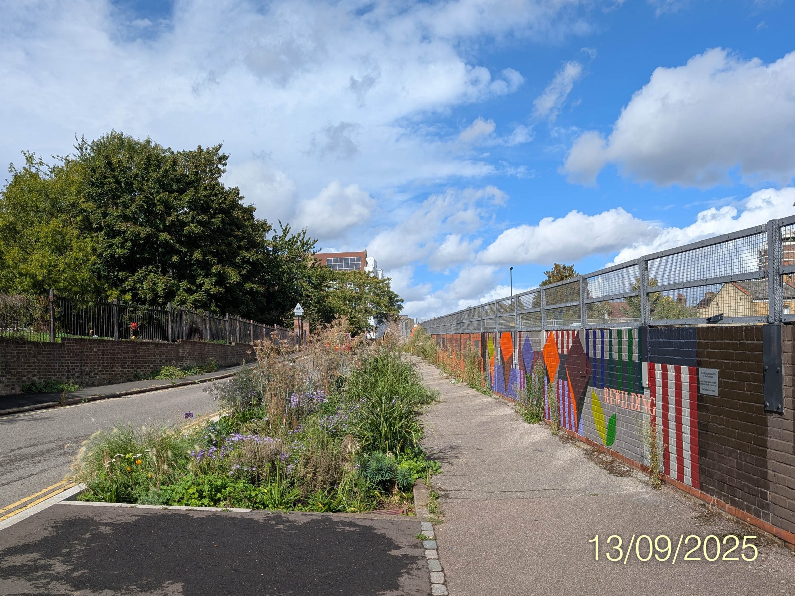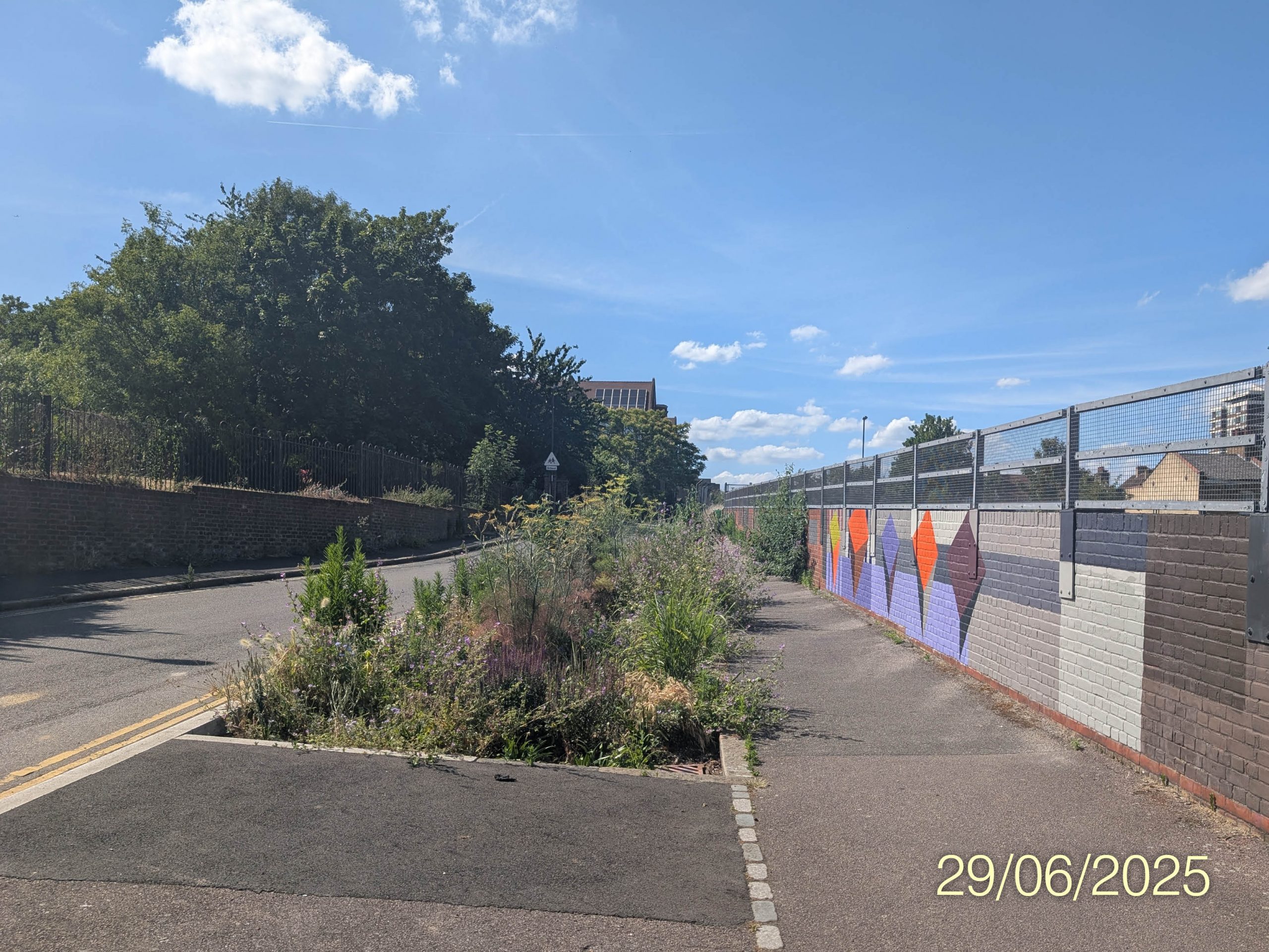 In July this year, the rain garden was joined by a similarly colourful and uplifting mural, painted by our very own Alma Tischlerwood following a successful funding application from Network Rail.